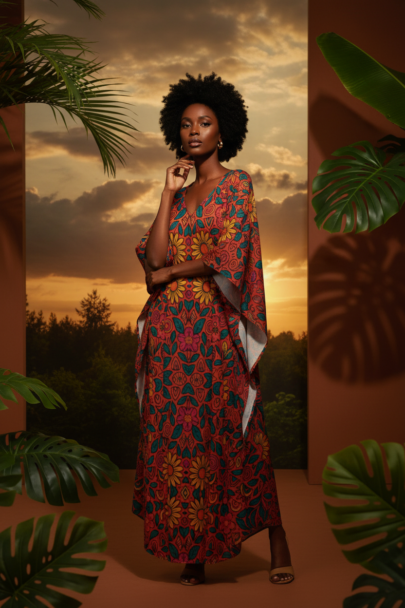 Caftan Solstice en Fleurs – Luxe Bohème Estival