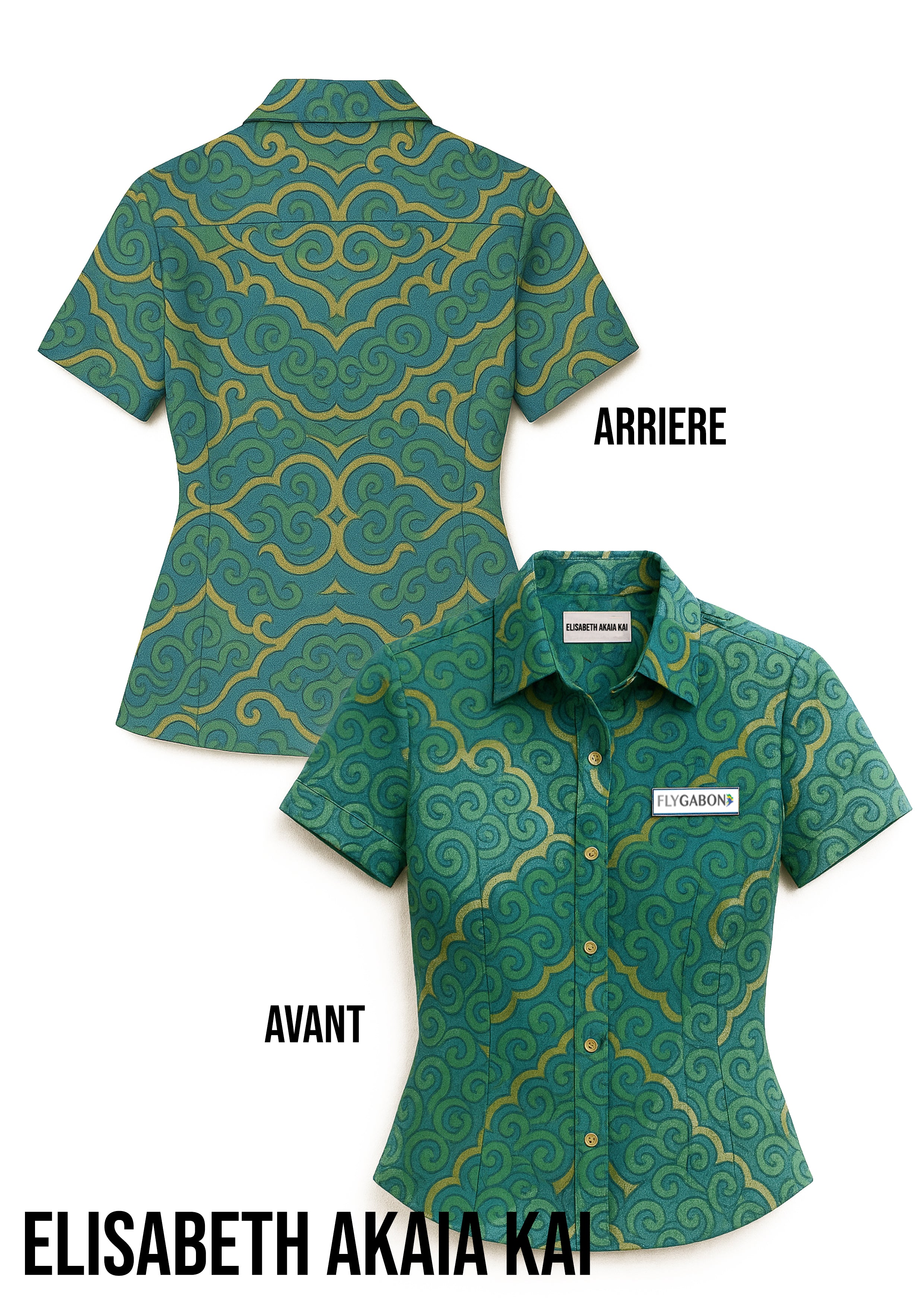 Les uniformes conçus par la maison Élisabeth Akaïa Kaï vont bien au-delà de la simple fonction vestimentaire : ils sont pensés comme une extension de la mission de Fly Gabon. Chaque tenue est une vitrine de l’hospitalité gabonaise, un langage visuel qui parle de chaleur, de professionnalisme et de fierté culturelle.